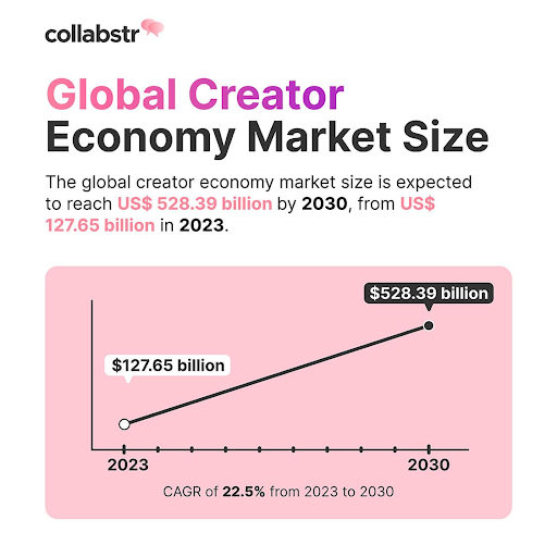 The global creator economy market size is expected to catapult from $127.65 billion in 2023 to an astounding $528.39 billion in 2030, driven by a compound annual growth rate (CAGR) of 22.5%. The growth is focused on in-app monetization features, which allows creators to create several income streams.
